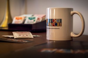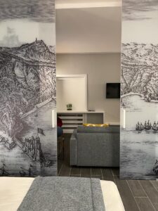 Nati da schizzi su cartoncino, i parati di ciascuna stanza rappresentano vere e proprie opere d’arte – da cui il nome “Galleria Sanfelice” – che conferiscono alle camere un’atmosfera unica. I disegni originali, realizzati a china, sono presenti in ogni stanza insieme al relativo parato che ne costituisce la versione pop, in quel connubio tra classico e moderno caratteristico della città. Gli spazi comuni ospitano inoltre l’immancabile simbolo della napoletanità, San Gennaro, patrono della città, la cui istallazione vi stupirà con il suo caleidoscopio di variazioni cromatiche.